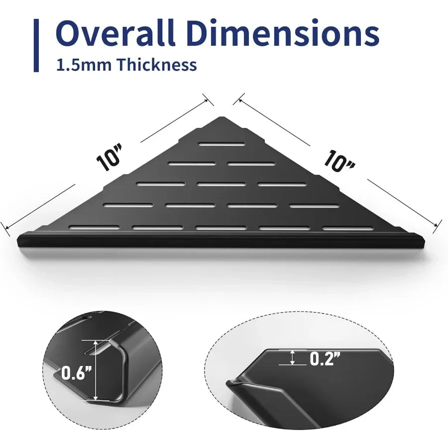 [304 Stainless Steel] Our corner shower shelf is made of standard 304 stainless steel, offering superior corrosion and rust resistance compared to standard stainless steel.