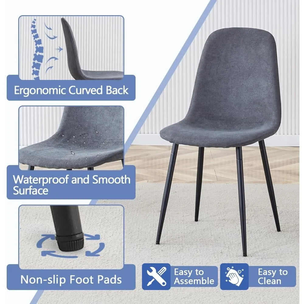 - Comfortable Upholstered Chairs: This 7 piece modern dining table set with chairs features PU leather and a breathable sponge seat cushion that relaxes the hip muscles. The 6 chair dining table set backrest is designed to perfectly adapt to your body shape, ensuring you can sit for extended periods without discomfort. Weight Capacity: 350 lbs.