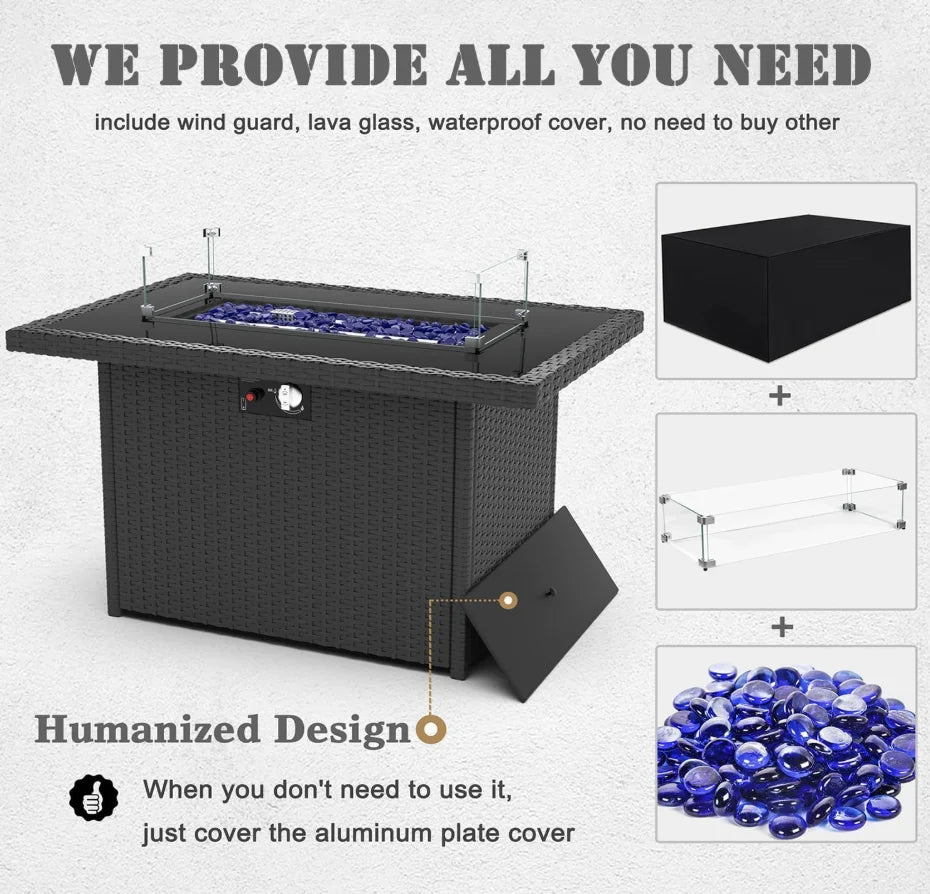 SAFETY ECO-FRIENDLY: The 55000 BTU outdoor firepit table with CSA certification.Upgraded dual-tube burner to provide more stable and cleaner combustion.