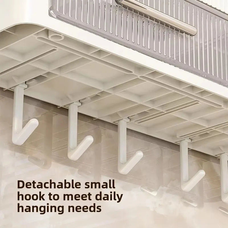 1. Multifunctional storage, with drawers and hooks, for storing cosmetics or hanging towels