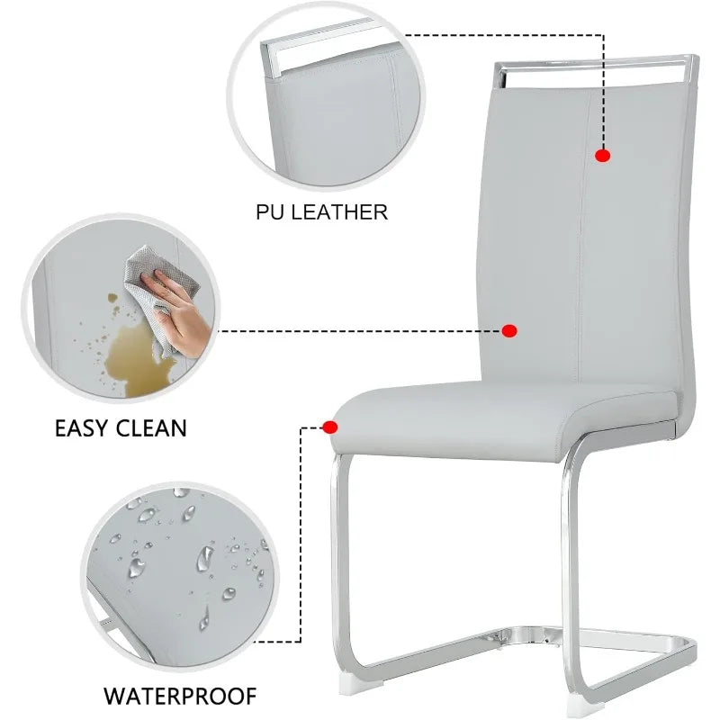 Gray 6-Person Dining Table Set - Faux Marble Top, PU Leather Chairs
