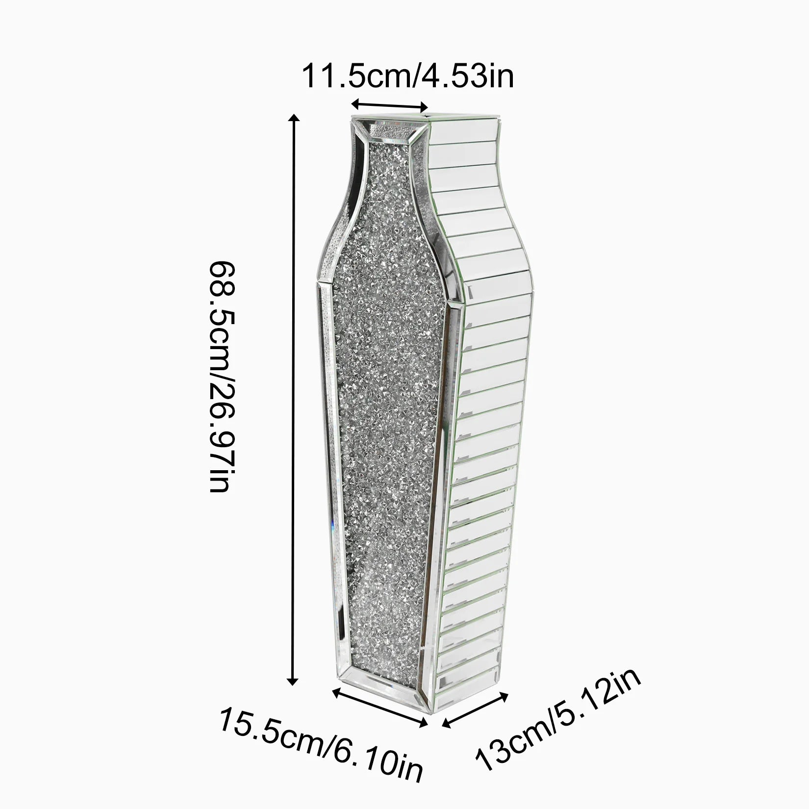 Tall Flower Vase Crushed Diamond Mirrored Floor Home Deco Vase